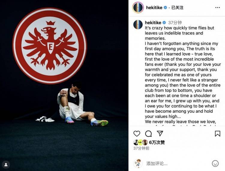 埃基蒂克社媒告别法兰克福:你们已深深烙印在我心里,永远的